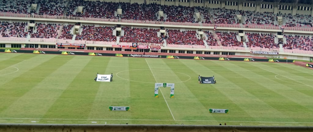 JAYAPURA — Atmosfer luar biasa tercipta di Stadion Lukas Enembe saat 20.270 suporter memadati tribun dan memberi energi tambahan bagi Persipura Jayapura. Dukungan tersebut berbuah manis setelah tuan rumah sukses menghentikan ambisi Barito Putera dengan kemenangan telak 4–1.