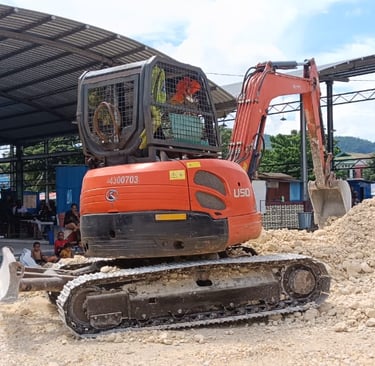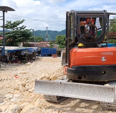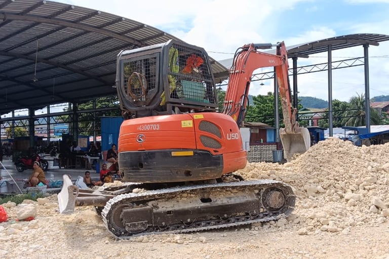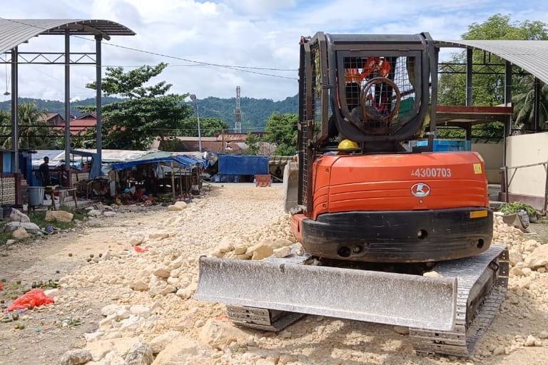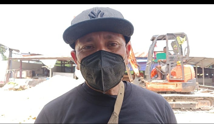 Caption : Kepala UPTD Pasar Yotefa La Kamaludin, saat memantau aktifitas alat berat meratakan material karang di pasar Yotefa Abepura