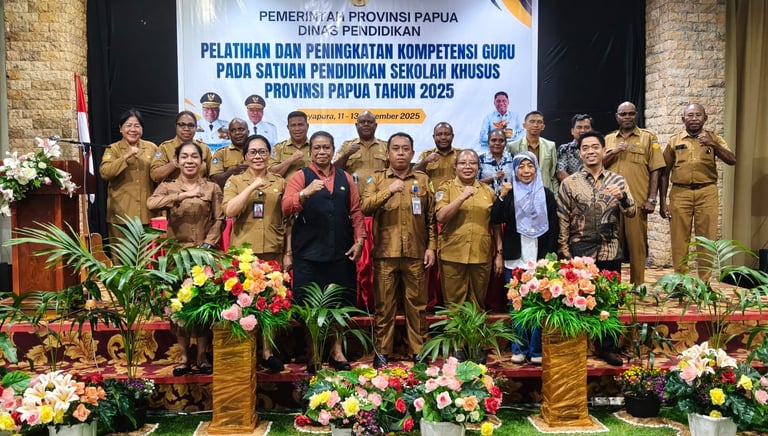 Jayapura -- Pemerintah Provinsi Papua melalui Dinas Pendidikan menggelar Pelatihan dan Peningkatan Kompetensi Guru pada Satuan Pendidikan Sekolah Khusus Provinsi Papua Tahun 2025 di Hotel Aston Kota Jayapura, Selasa (11/11/2025).