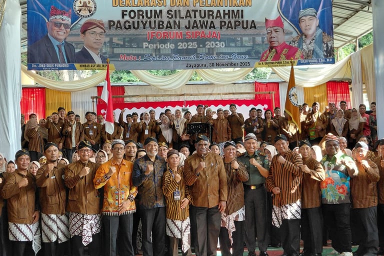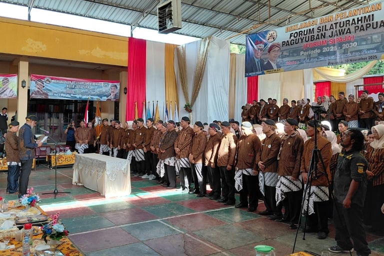 Jayapura —Forum Silaturahmi Paguyuban Jawa Papua (Forum Sipaja) resmi dideklarasikan dalam kegiatan yang diselenggarakan di PTC Entrop, Distrik Jayapura Selatan, Kota Jayapura, Minggu (30/11/2025).