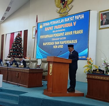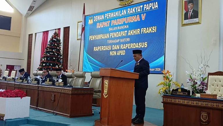 Persetujuan itu disampaikan Arifin Mansyur, S. Ag selaku pelapor Fraksi NasDem, dalam pendapat akhir fraksi pada rapat paripurna V DPR Papua, Jumat 09 Januari 2026.