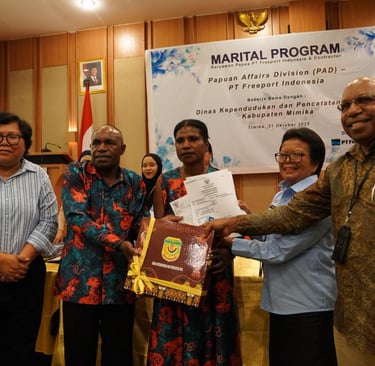 Jayapura-PT Freeport Indonesia (PTFI) mendorong karyawan PTFI dan kontraktor Orang Asli Papua (OAP) meningkatkan taraf hidup dan kesejahteraan, salah satunya melalui program Marital Program atau Nikah Catatan Sipil secara Massal.