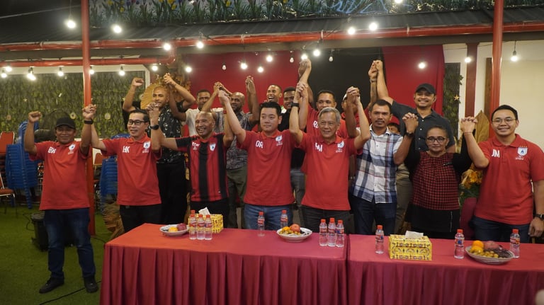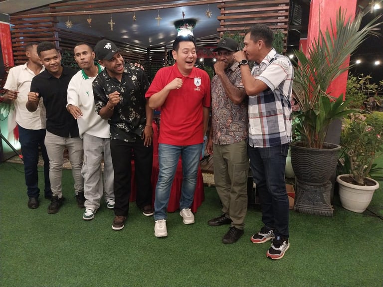 JAYAPURA (Berita21.id) - Pemilik Nusa Tuna Owen Rahadian yang sebelumnya menjadi sponsor utama tim PSBS Biak, resmi bergabung dengan manajemen Persipura Jayapura. Kepastian bergabungnya itu diumumkan langsung Ketua Umum Persipura Jayapura, Benhur Tomi Mano (BTM), Senin (26/05/2025) malam.