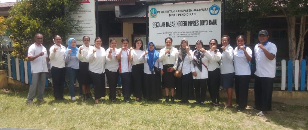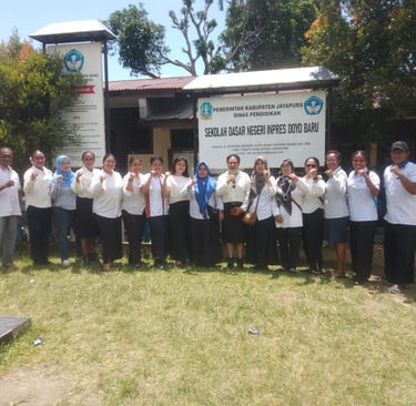 Sentani -- Kepala Sekolah SD Negeri Inpres Doyo Baru, Grace Gerthi Mehue, bersama para guru menjalankan sejumlah program prioritas untuk meningkatkan kualitas pendidikan dan keamanan sekolah, Kamis (30/10/2025).