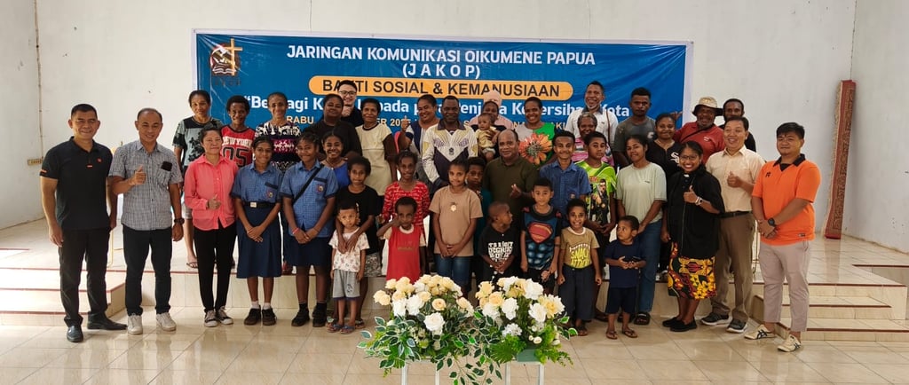 Jayapura -- Guna mewujudkan kerja-kerja nyata di tanah Papua, Jaringan Komunikasi Oikumene Papua (JAKOP) menggelar program bakti sosial dan kemanusiaan dengan menyalurkan bantuan sembako kepada 30 petugas kebersihan di Kota Jayapura, Rabu (10/12/2025).