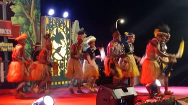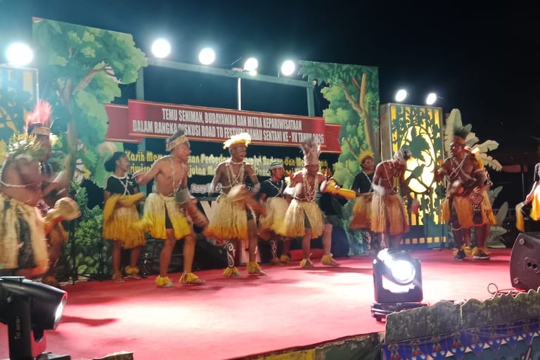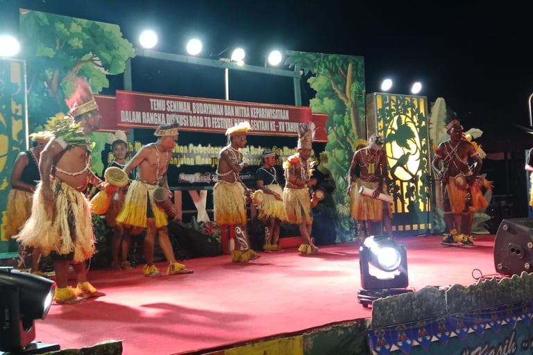 Penampilan salah satu sanggar Seni di Acara Roudahouw Menuju FDS yang di Gelar Dinas Pariwisata Kabupaten Jayapura di Taman Pholeuw Park Sentani Timur Kabupaten Jayapura