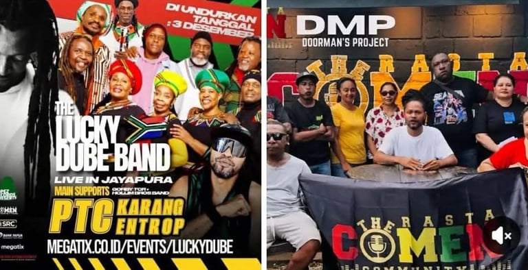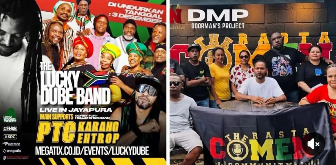Tampak foto Gorby The Comen Rasta (TCR) dan Grup Band Lucky Dube. (Foto akun media sosial Gorby TCR)