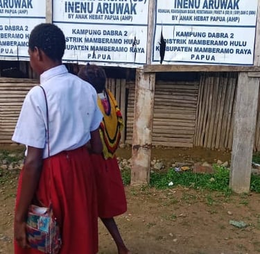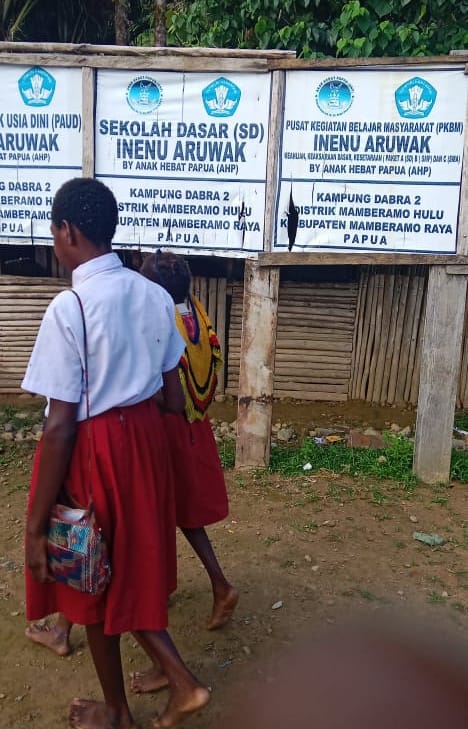 Jayapura (Berita21.id) - VIral di Media Sosial sebuah sekolah yang berada di Dabra Kabupaten Mambramo Raya Provinsi Papua kondisinya cukup memprihatinkan, anak sekolah belajar meja papan, lantai tanah, atap terpal.