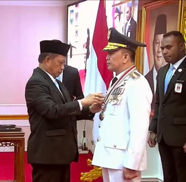 Jayapura (Berita.21) - Menteri Dalam Negeri Tito Karnavian melantik Direktur Jenderal Bina Keuangan Daerah Kemendagri Agus Fatoni menjadi PJ Gubernur Papua mengantikan PJ sebelumnya Ramses Limbong di gedung A Kemendagri, Senin, (07/07/2025).