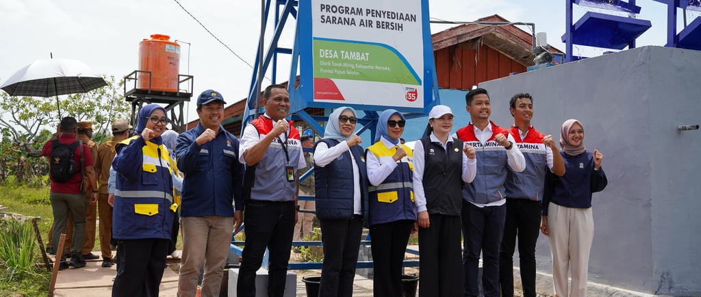 Merauke - PT Pertamina (Persero), melalui Subholding Commercial & Trading PT Pertamina Patra Niaga berkolaborasi bersama Kementerian Energi dan Sumber Daya Mineral (ESDM) serta Solidaritas Perempuan untuk Indonesia (SERUNI) Kabinet Merah Putih (KMP) mewujudkan akses air bersih bagi 699 masyarakat Kampung Tambat, Merauke, Papua Selatan. Ini adalah wujud komitmen dalam mendukung peningkatan kualitas hidup masyarakat serta penyediaan akses air bersih yang berkelanjutan.