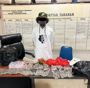 Jayapura (Berita21.id) - Seorang pria berinisial BI (25) berhasil di ringkus Satuan Reserse Narkoba (Satresnarkoba) Polresta Jayapura di kawasan ruang tunggu penumpang Pelabuhan Laut Jayapura Jumat, (29/08/2025).