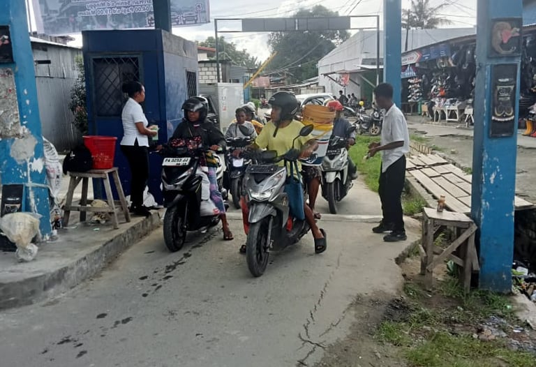 Foto: Aktifitas Retribusi Parkir oleh Peutgas di pintu masuk Pasar Para sentani