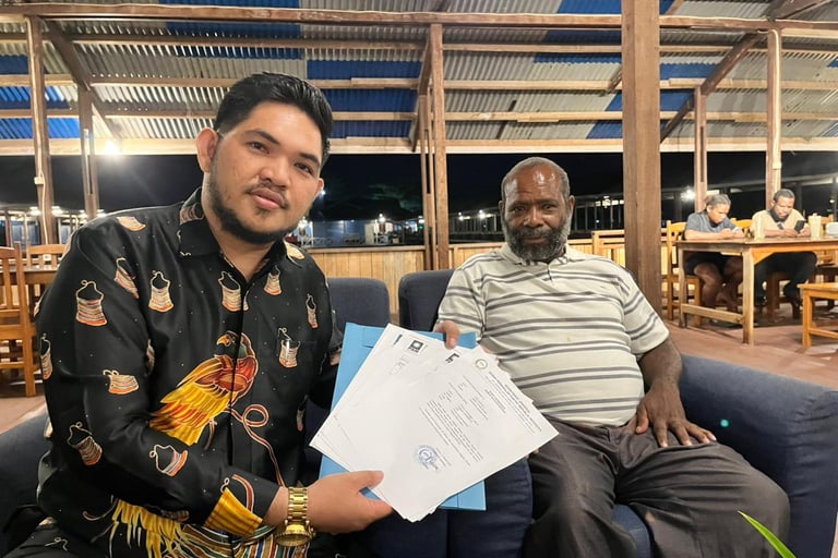 Foto: Wakil Bupati Nduga terpilih Paulus Ubruangge, AMd.PI. saat bersama kuasa Hukum Christian G. Pioh, S.H., M.H., C.L.A di Jayapura (*)