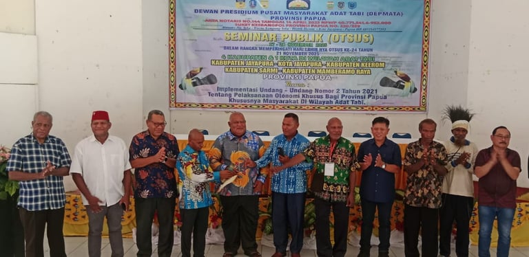 Seminar Publik dengan Thema " Implementasi Undang-Undang Nomor 2 Tahun 2021, Tentang Pelaksanaan Otonomi Khusus Bagi Provinsi Papua Khususnya Masyarakat di Wilayah Adat Tabi"
