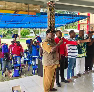 Ondoafi Kampung Waena, Richard Ohee, dalam sambutannya, ia menyampaikan pentingnya kegiatan sosialisasi sebagai upaya menumbuhkan semangat kebersamaan dan cinta tanah air.