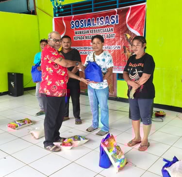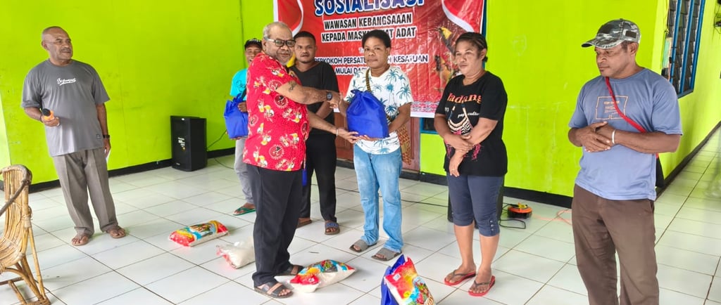 Jayapura – Keondoafian Kayo Batu menggelar sosialisasi wawasan kebangsaan yang dipadukan dengan penyaluran bantuan sosial di kediaman Keondoafian Kayo Batu, Deplat Kanan, Jayapura Utara, Kota Jayapura, Papua, Selasa (4/11/2025).